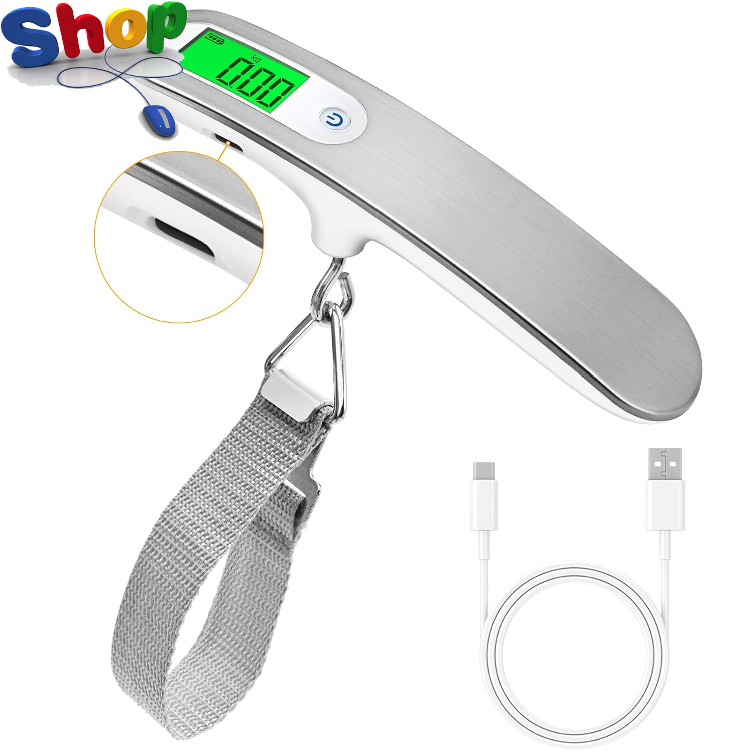 Digital Luggage Scale with Strap & Type-C Port - Rechargeable, Portable, High-Pr