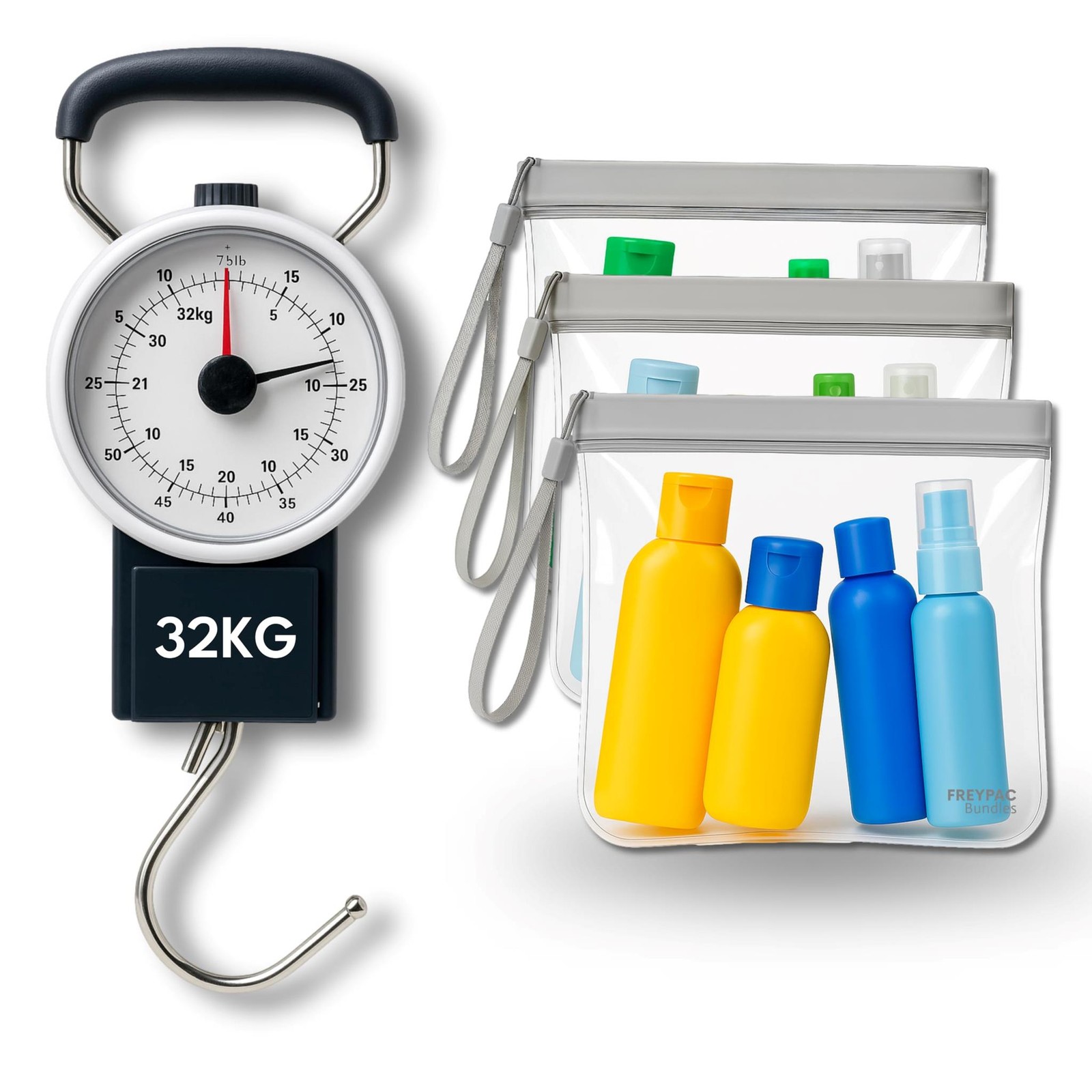 FREYPAC Luggage Scale with Tape Measure, 32kg Capacity, 3 Airline Approved Clear