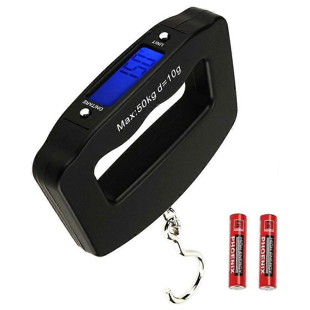 (As show, One size) 50kg Portable Electronic Hanging Scale Digital Luggage Fishing Scale with Battery Hook Type