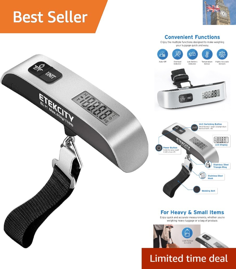 Etekcity EL11 Digital Luggage Scale with Temperature Sensor, 110lb Capacity, Sil