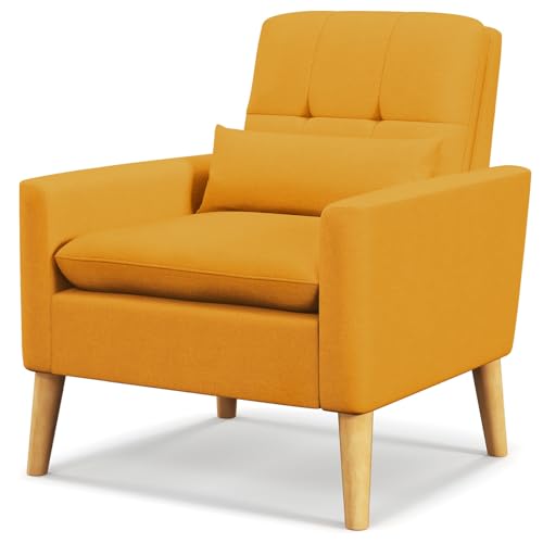 RELAX4LIFE Sofa Chair, Upholstered Padded Single Accent Armchair with Lumbar Pillow & Cushion and Anti-slip Foot Pads, Tufted Button Lounge Chair for Living Room Bedroom Office (Yellow)