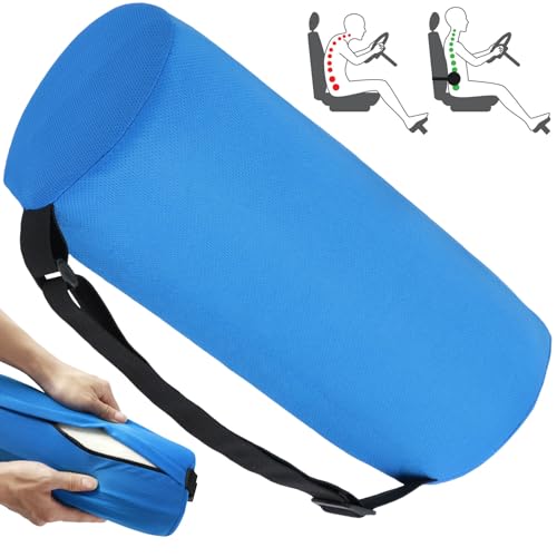 Gatphy Lumbar Roll Pillow Memory Foam Roll Pillow Adjustable Cylindrical Backrest Sofa Cushion with Removable Washable Cover Elastic Strap 11 Inch Lumbar Support Pillow for Office Chair Couch (Blue)
