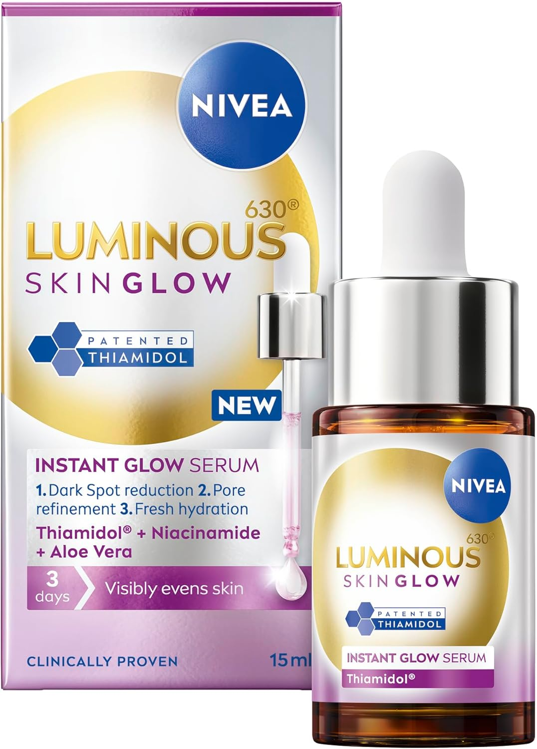 NIVEA Luminous 630 Even Glow Serum with Thiamidol 15Ml, Serum for Face with Niac