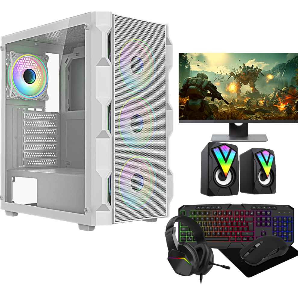 Luna White Gaming PC – Intel Core i5, GT 710/730 2GB Graphics, 16GB RAM, 1TB HDD + 128GB SSD, Windows 11 Pro, 22" Monitor, Keyboard, Mouse, Headset – High-Performance Gaming PC Bundle
