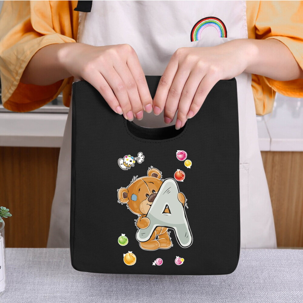 Portable Lunch Bag 26 Bear Letter Print Thermal Insulated Lunch Totes Cooler Bag Bento Pouch Container Food Storage Box