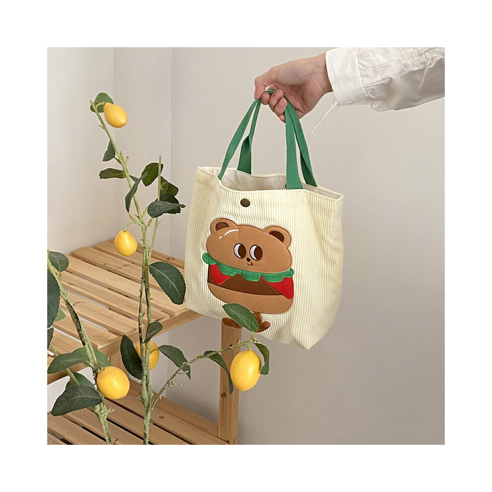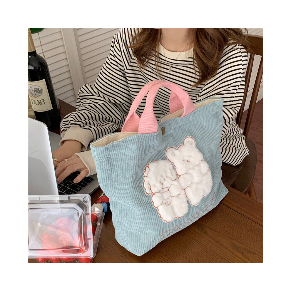 Plush Bear Embroidery Women Hand Carry Handbags Retro Corduroy Female Small Tote Shoulder Bag Student Girls Lunch Bento Bag