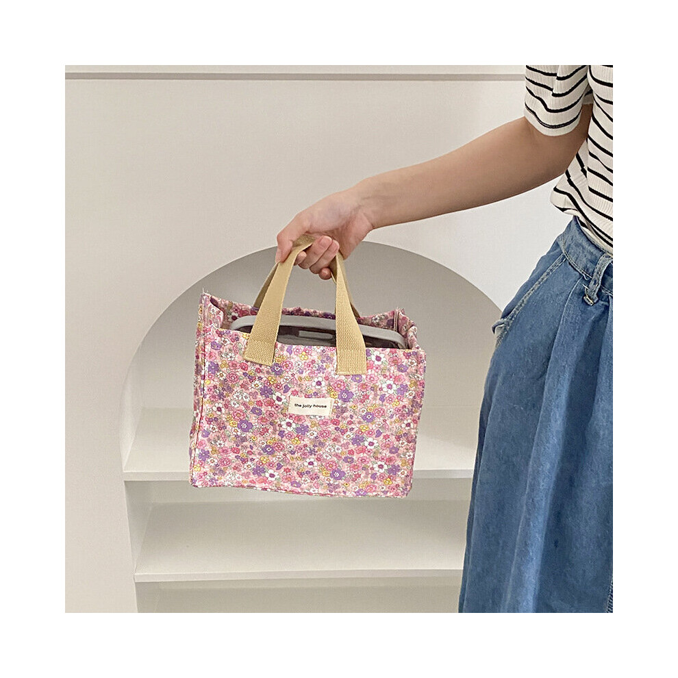 Flower Insulated Lunch Bag Canvas Bento Pouch Thermal Dinner Bag Insulated Lunch Box Cooler Bag Food Container Handbag