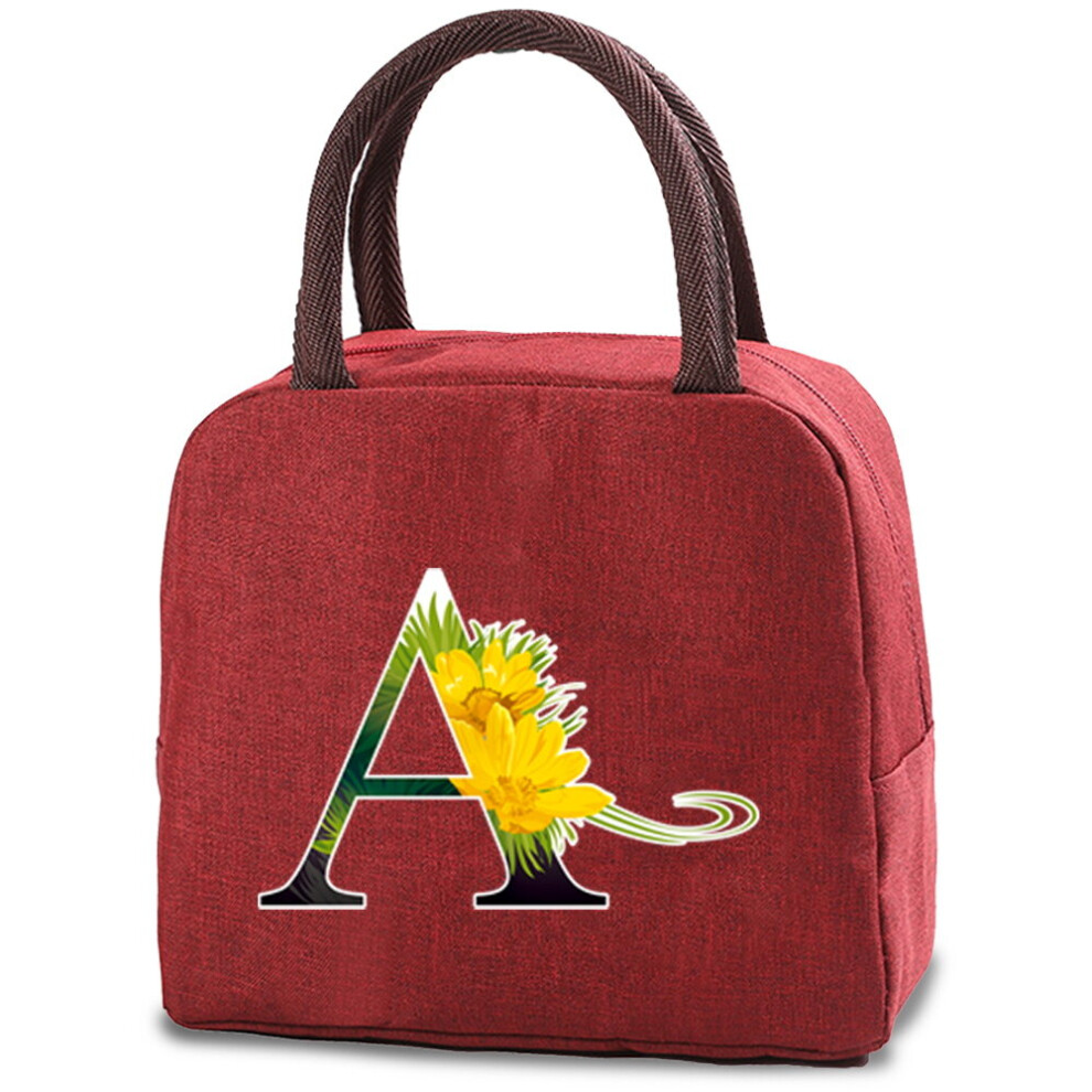 26 Initial Letter Print Functional Pattern Cooler Lunch Bag Portable Insulated Bento Box Tote Thermal Food Picnic Storage Pouch
