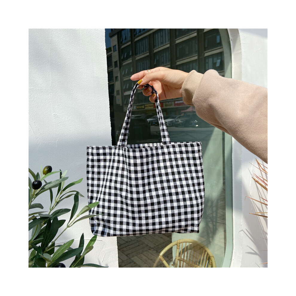Portable Cotton Women Lunch Bento Bag Vintage Plaid Canvas Ladies Small Handbags Female Cloth Mini Tote Bag Clutch Purse