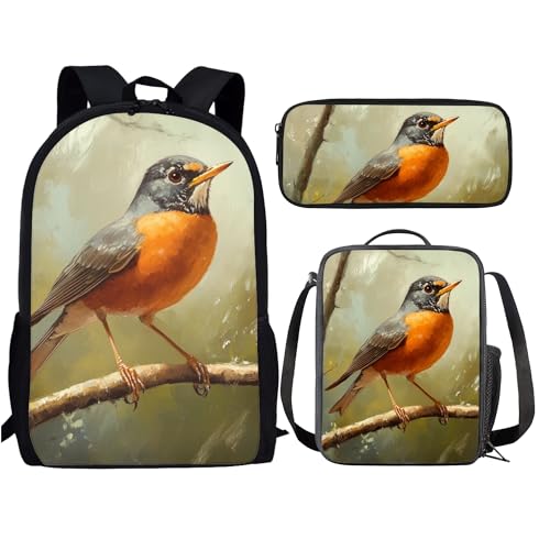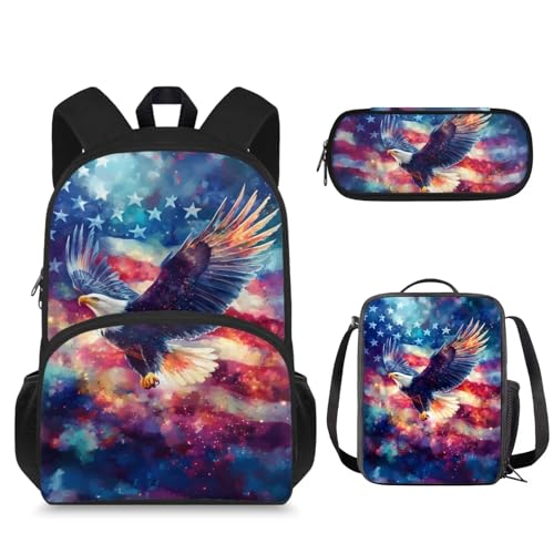 Jekioweii Eagle American Flag Girls Boys Backpack Lightweight Kids School Bag Insulated Lunch Box and Pencil Case Set of 3 Middle Elementary Student Child Bookbag for Back to School Season