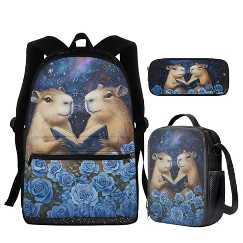 NJIEzhao Backpack Set 3 Pcs/Set School Bag for Girls Children Backpack Schoolbag Teenage Child with Lunch Box(Color 2)