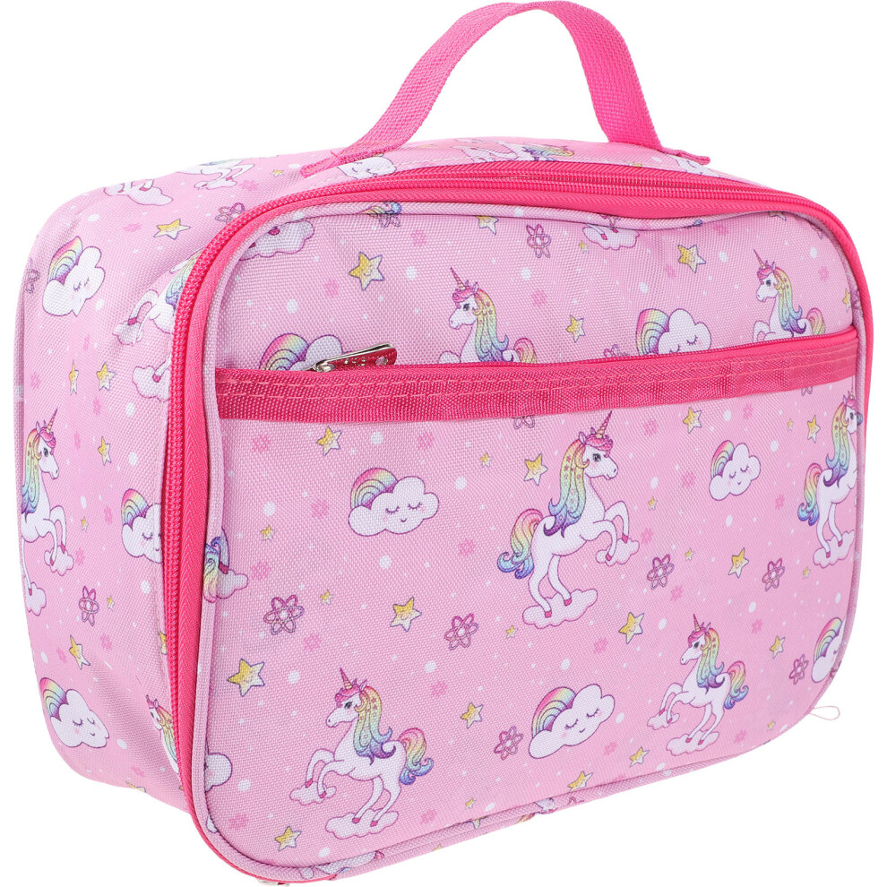Insulated Unicorn Kids Lunch Bag for Girls Child with Bottle Holder, Carry Handle & Shoulder Strap, Kids Lunch Box Snack Box Thermal Tote Cooler Bag