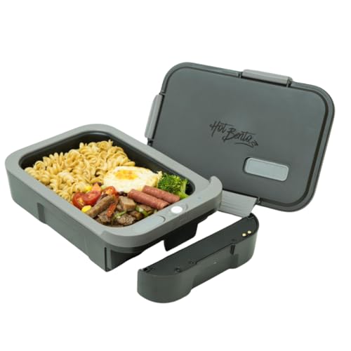 Hot Bento Plus - Electric, Self-Heating, Rechargeable Lunch Box, 10-Minute Heating, Removable Battery, Child Safe, Scientific Portion Control, School, Construction, Office, Recreation, Travel - Black