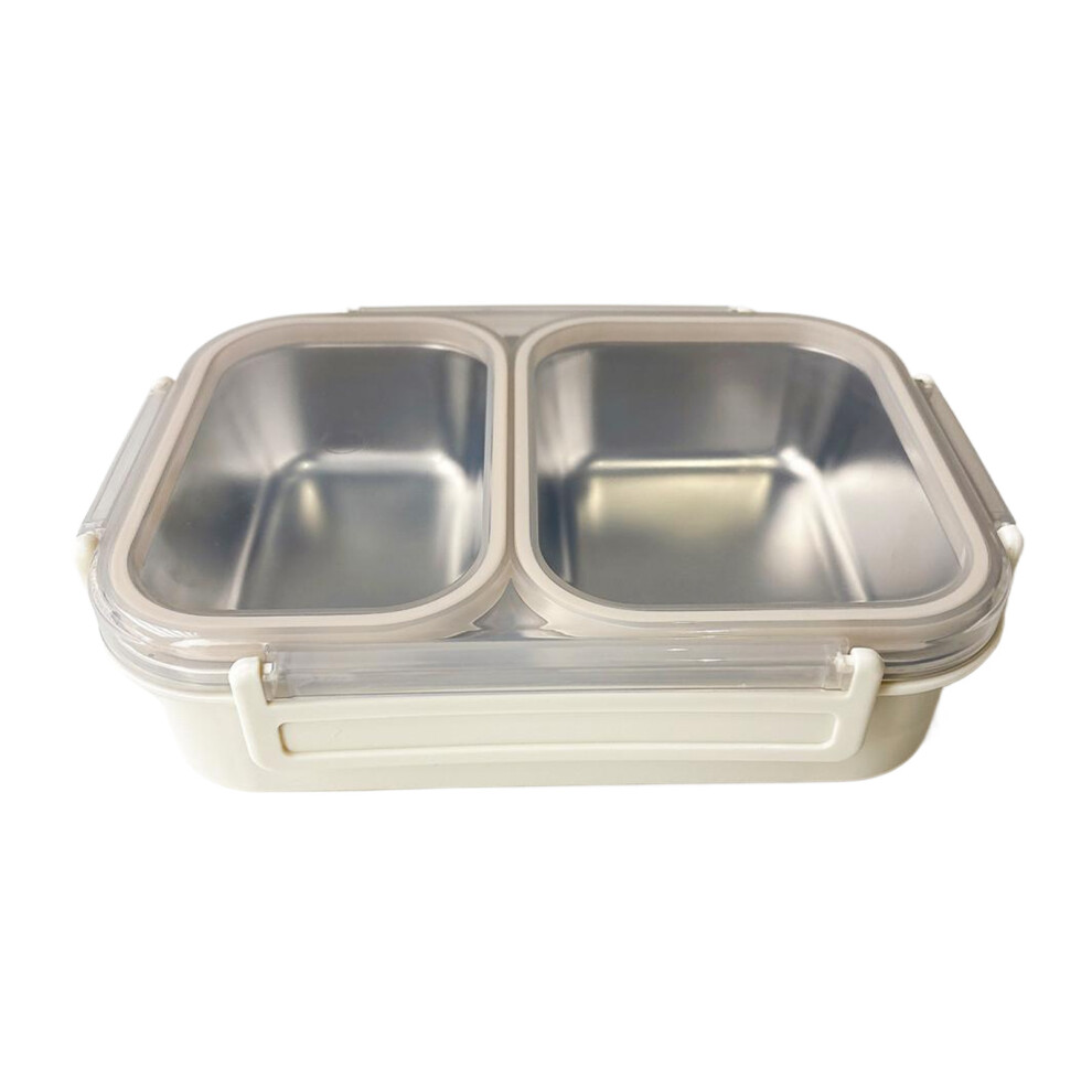 (Beige) Stainless Steel Lunch Box With Dividers Pack Balanced Meal Stainless
