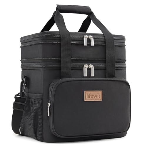 Lifewit 21L 30Can Lunch Box for Men Women Double Deck Lunch Bag, Large Insulated Soft Cooler Bag, Leakproof Soft Meal Prep Lunch Tote with Shoulder Strap for Adults for Work/Picnic/School, Black