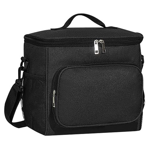 TIECHI 10L Insulated Lunch Bag, Large Leakproof Thermal Lunch Box Bag for Men/Women/Adults Cool Bag with Adjustable Shoulder for Work Beach Picnic Camping (Black)