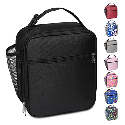 TIECHI Insulated Lunch Bag with Side Mesh Pocket, Thermal Packed Lunch Box for Adults/Kids/Men/Women, Water-Resistant Leakproof Cool Bag for Work/School/Picnic/Outdoor(Black)