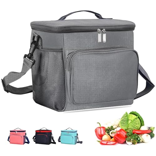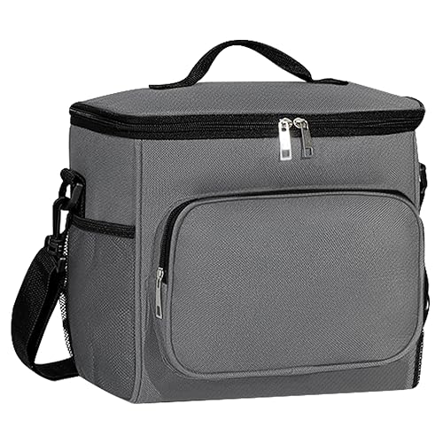 TIECHI 10L Insulated Lunch Bag, Large Leakproof Thermal Lunch Box Bag for Men/Women/Adults Cool Bag with Adjustable Shoulder for Work Beach Picnic Camping (Grey)