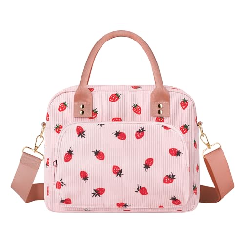 Lunch Bag for Women & Kids, 11.5L Large Insulated Lunch Box Bag, Adults Girls Packed Lunch Box Tote Bags with Shoulder Strap, Soft Cooler Picnic Bags for Work School Picnics (Pink Strawberry)