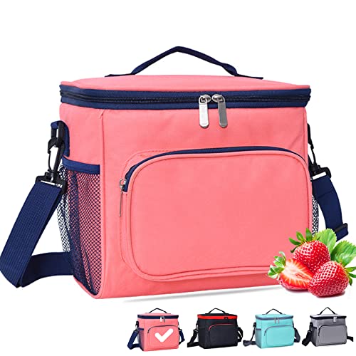 BOCHION Lunch Bags for Women, Insulated Cool Bag for Lunch Box with Shoulder Strap, Portable Thermal Cooler Tote Lunch Bag Leak-Proof for Men Adults Girls at Work School Travel Picnic Outdoor (Pink)