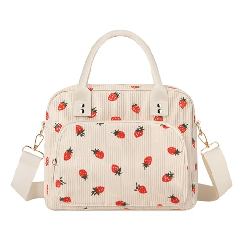 Lunch Bag for Women & Kids, 11.5L Large Insulated Lunch Box Bag, Adults Girls Packed Lunch Box Tote Bags with Shoulder Strap, Soft Cooler Picnic Bags for Work School Picnics (Beige Strawberry)