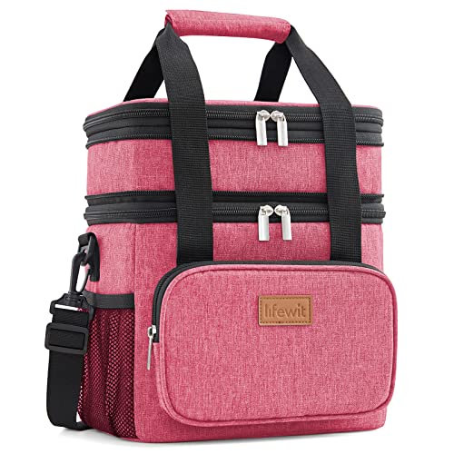 Lifewit 12L 16Can Lunch Box for Men Women Double Deck Lunch Bag, Medium Insulated Soft Cooler Bag, Leakproof Soft Meal Prep Lunch Tote with Shoulder Strap for Adults for Work/Picnic/School, Pink