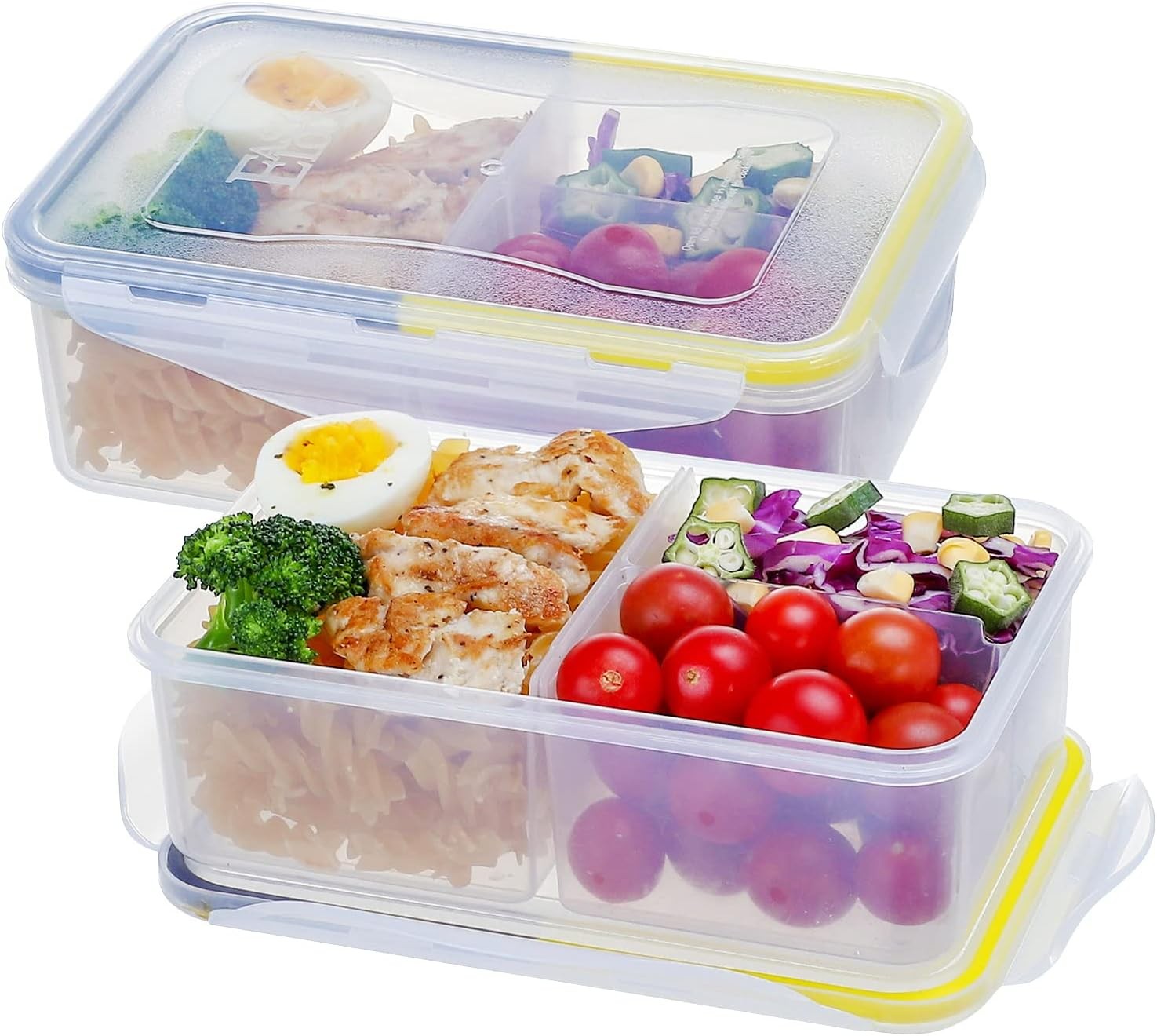 EASYLOCK 2 Pack 1150ML Microwavable Bento Lunch Box with 3 Compartments Plastic