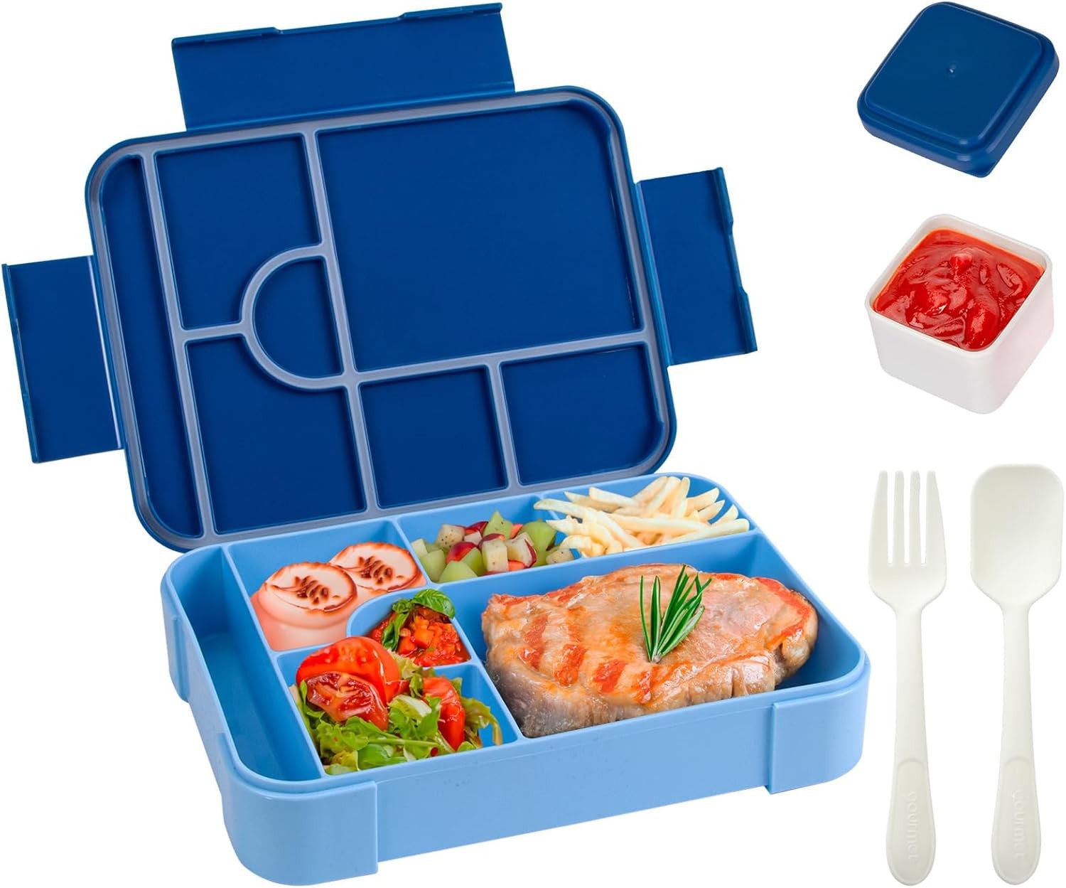 (Blue) Kids Lunch Box (with Compartments And Cutlery), 1300ml Lunch Box (leak-proof For Kindergarten), Girls Lunch Box (microwave Safe), Kids Snack Bo