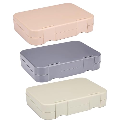 Philorn 4 Pack Snack Box with Compartments for Kids & Adults, Reusable Lunch Box with 5 Compartments, Leakproof Divided Bento Lunch Box for Travel School Work (Pink/Green/Beige/Blue)