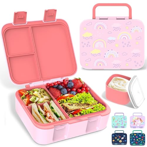 Anyiner Kids Lunch Box, Leakproof Bento Lunch Box with Multi-Compartments & Sauce Jar, Portable Snack Box Mermaid Bento Box for Kids Adults Work School, Pink Rainbow
