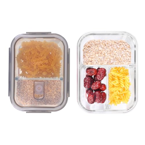 Gcirn Glass Lunch Box with Lid1040ml*2 -Airtight Glass Meal Prep Containers Reusable - 2compartment Food Storage - Freezer Containers - Kitchen Essentials - Lunch Box with Compartments