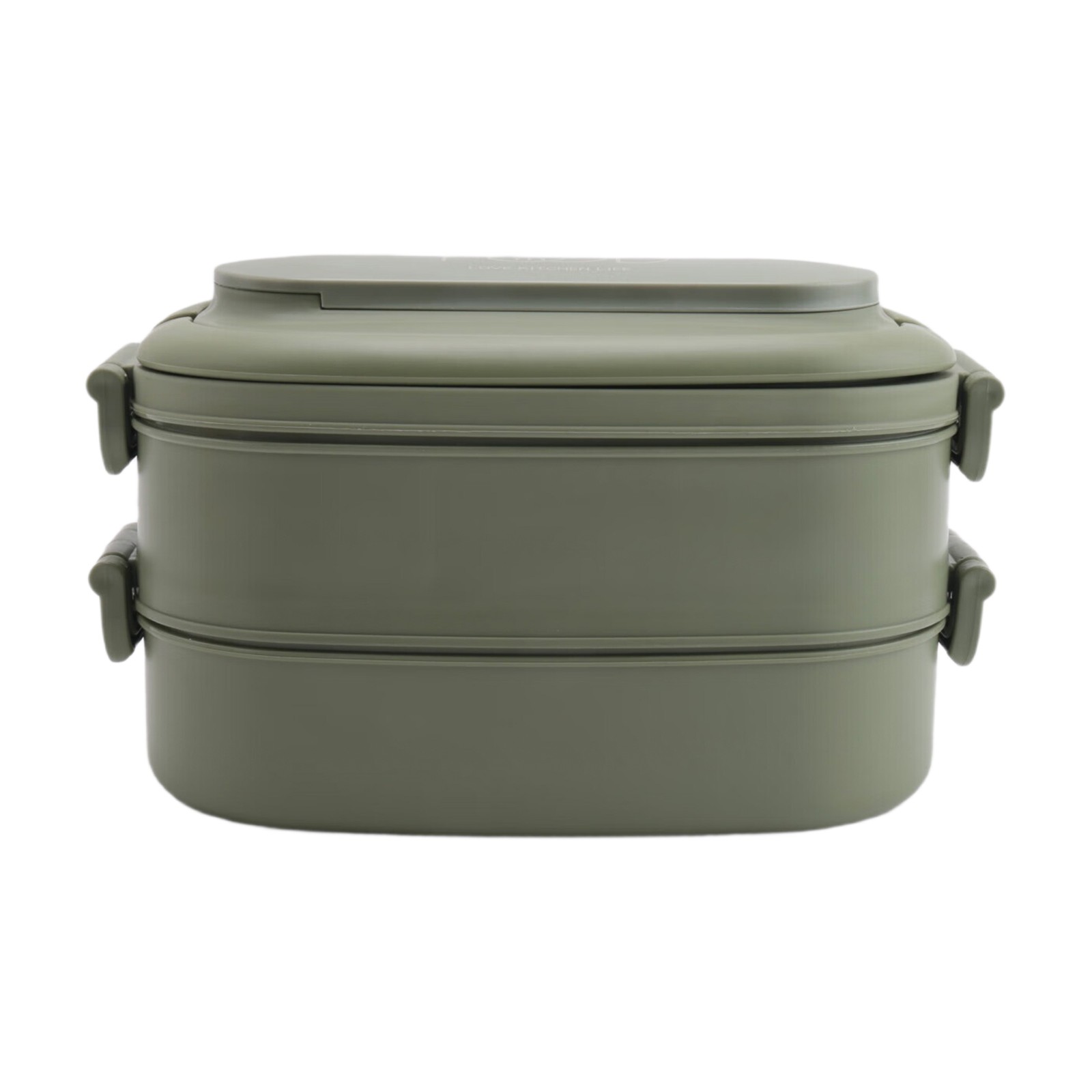 Sinnsally 1400ML Bento Box Lunch Boxes, Stackable Bento Lunch Box for Adults,Leak-Proof Lunch Container with Compartments,Japanese Style Lunchbox with Sauce Pot Cutlery Set (Nordic Green)