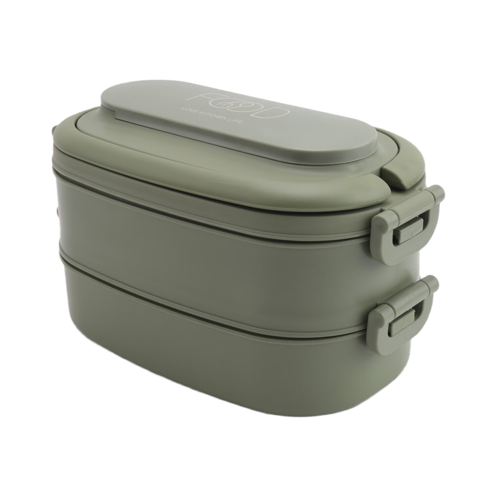 Jsdoin Bento Lunch Box Stackable,1400ml Containers with 3 Removable Compartments and Cutlery, Leak Proof 2 Layer Boxes, for Adults Kids Office Microwave Dishwasher Safe Available (Green)