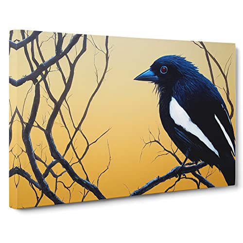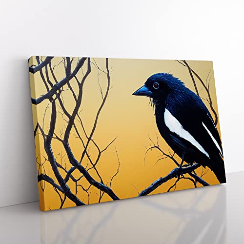 Lush Magpie Bird Canvas Wall Art Print Ready to Hang, Framed Picture for Living Room Bedroom Home Office Décor, 30x20 Inch (76x50 cm)