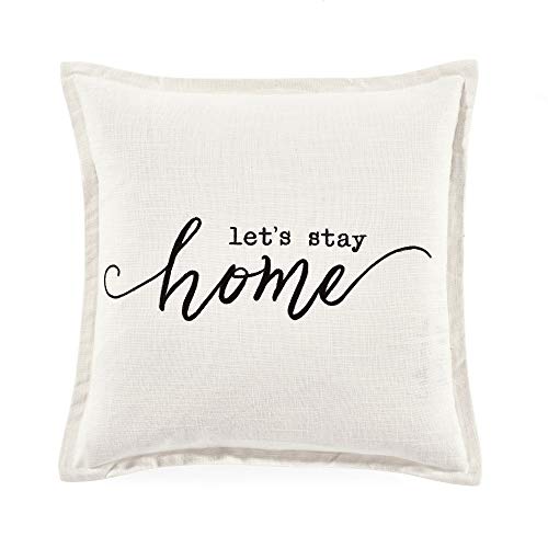 Lush Decor Let's Stay Home Script Decorative Single Pillow Cover, 20" x 20", White