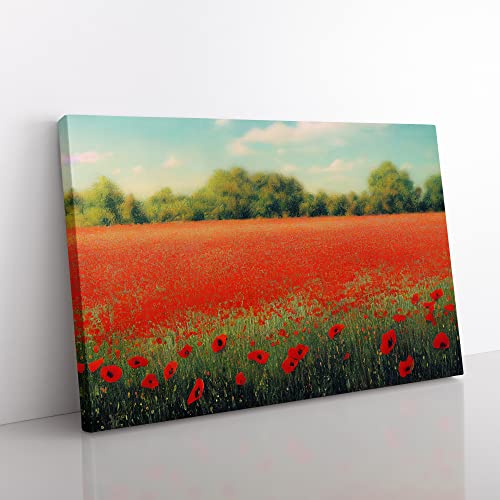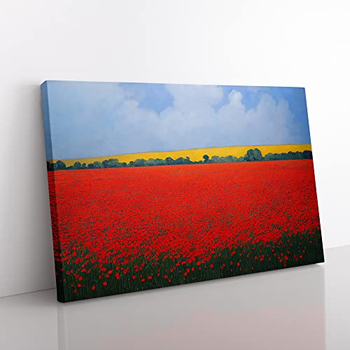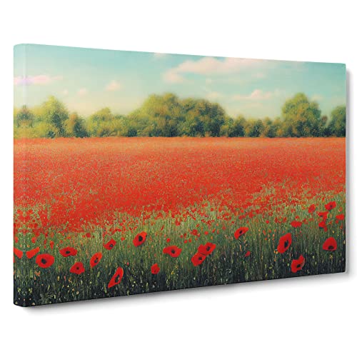 A Lush Poppy Field Flowers Canvas Wall Art Print Ready to Hang, Framed Picture for Living Room Bedroom Home Office Décor, 76x50 cm (30x20 Inch)