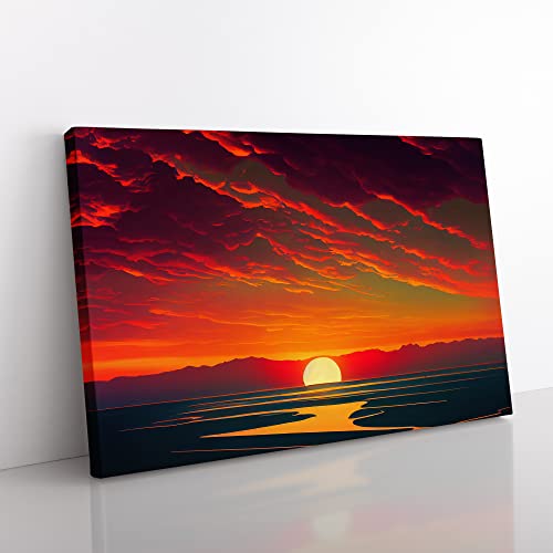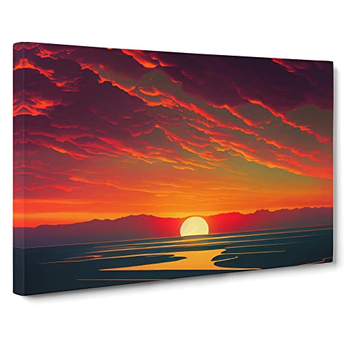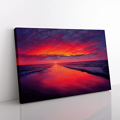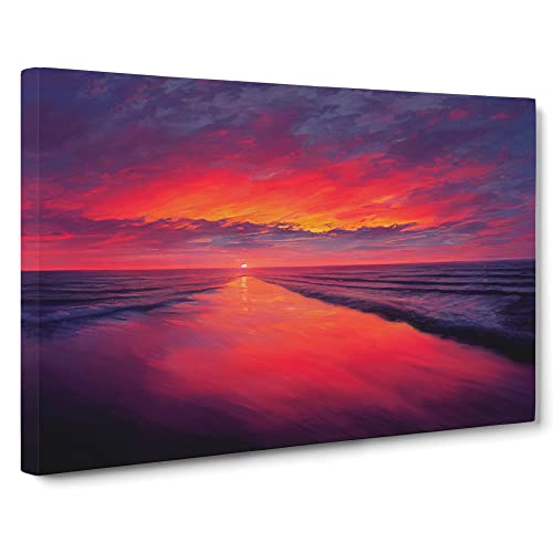 Lush Ocean Sunset Canvas Wall Art Print Ready to Hang, Framed Picture for Living Room Bedroom Home Office Décor, 76x50 cm (30x20 Inch)