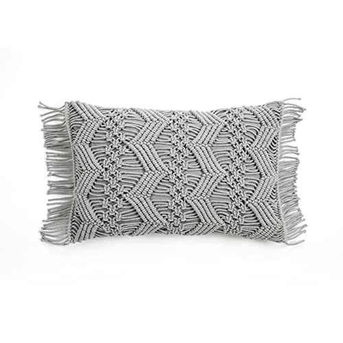Lush Decor Studio Chevron Macrame Decorative Pillow Cover, 13" W x 20" L, Gray