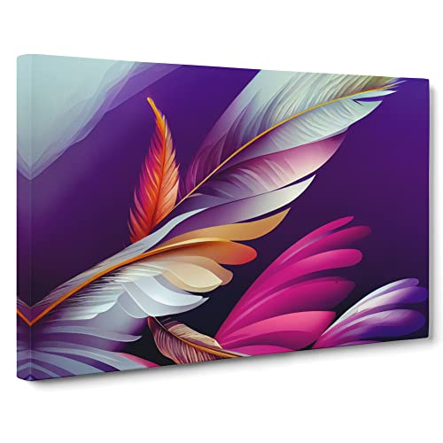 Lush Bird Feathers Canvas Wall Art Print Ready to Hang, Framed Picture for Living Room Bedroom Home Office Décor, 30x20 Inch (76x50 cm)