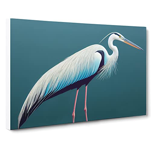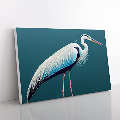 Lush Heron Bird Canvas Wall Art Print Ready to Hang, Framed Picture for Living Room Bedroom Home Office Décor, 76x50 cm (30x20 Inch)