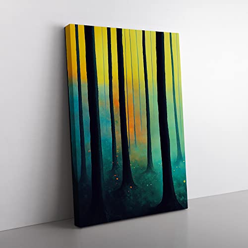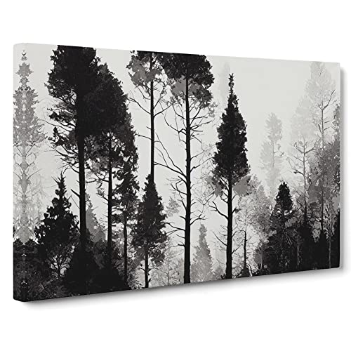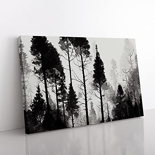 Lush Pine Tree Forest Canvas Wall Art Print Ready to Hang, Framed Picture for Living Room Bedroom Home Office Décor, 50x35 cm (20x14 Inch)