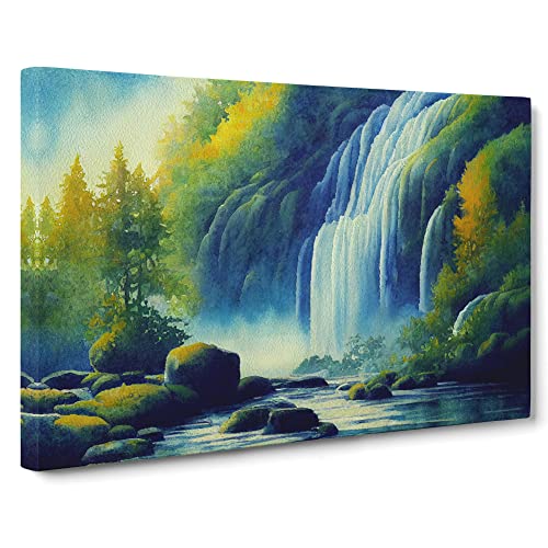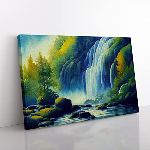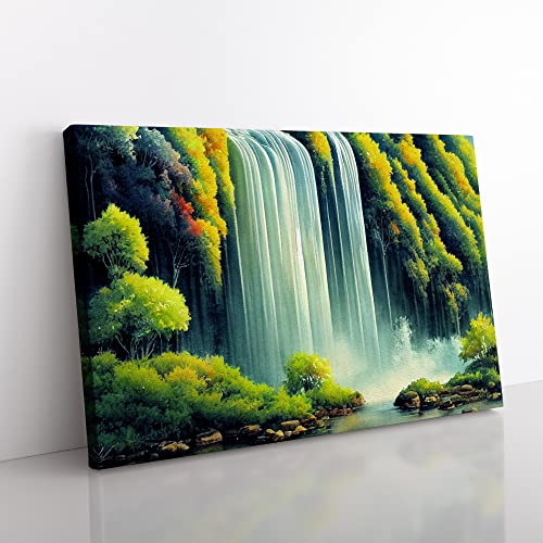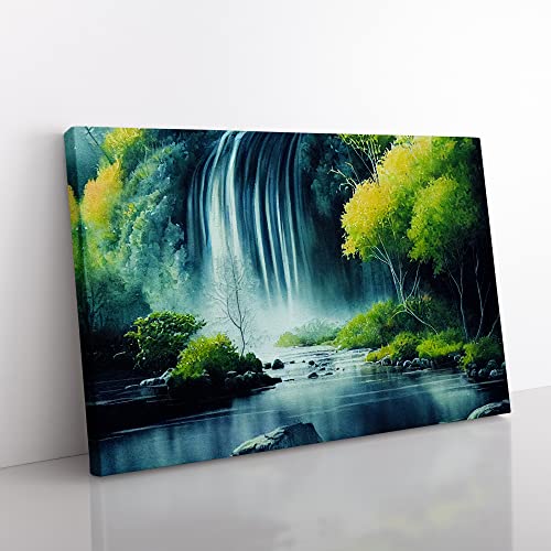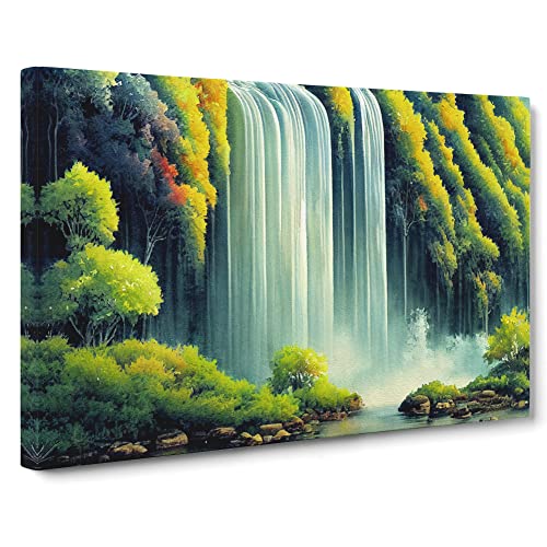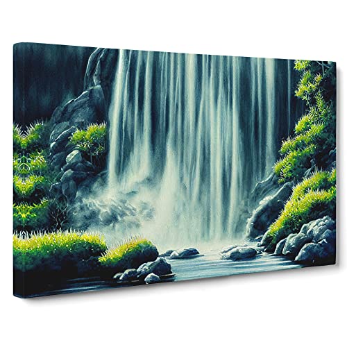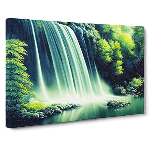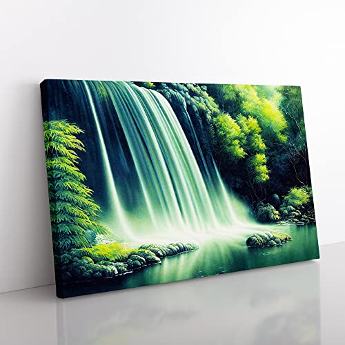 Lush Waterfall Vol.5 Canvas Wall Art Print Ready to Hang, Framed Picture for Living Room Bedroom Home Office Décor, 76x50 cm (30x20 Inch)