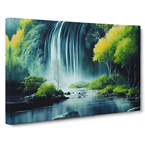 Lush Waterfall Vol.1 Canvas Wall Art Print Ready to Hang, Framed Picture for Living Room Bedroom Home Office Décor, 30x20 Inch (76x50 cm)