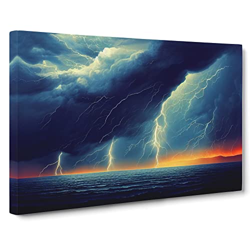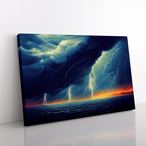 Lush Ocean Thunderstorm Canvas Wall Art Print Ready to Hang, Framed Picture for Living Room Bedroom Home Office Décor, 76x50 cm (30x20 Inch)