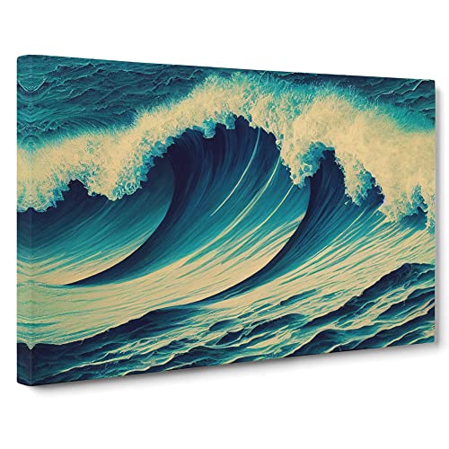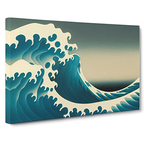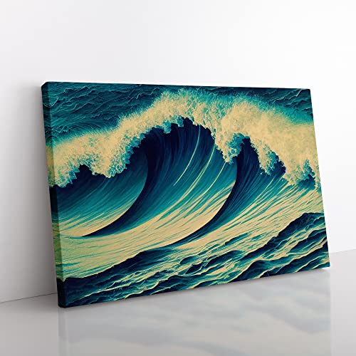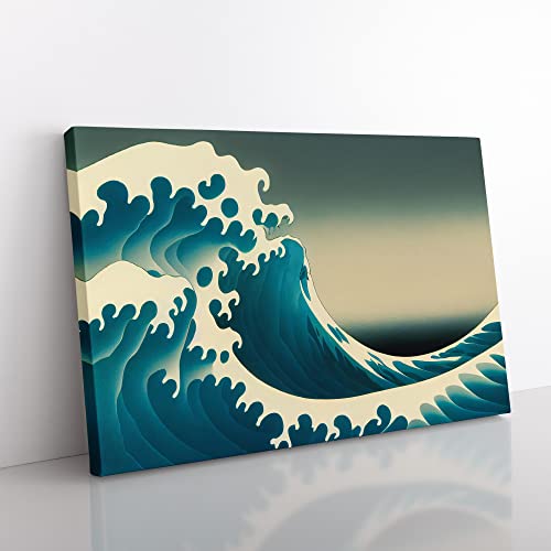 Lush Japanese Wave Canvas Wall Art Print Ready to Hang, Framed Picture for Living Room Bedroom Home Office Décor, 76x50 cm (30x20 Inch)