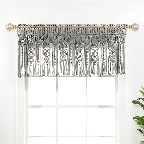 Lush Decor Boho Macrame Textured Cotton Valance/Kitchen Curtain/Wall Décor, 20" L x 50" W, Gray