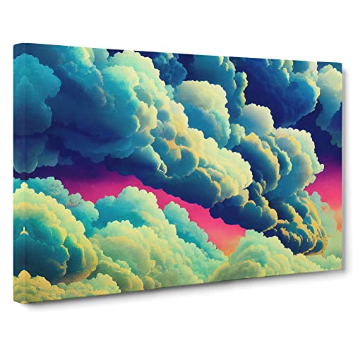 Lush Cloudy Sky Canvas Wall Art Print Ready to Hang, Framed Picture for Living Room Bedroom Home Office Décor, 76x50 cm (30x20 Inch)