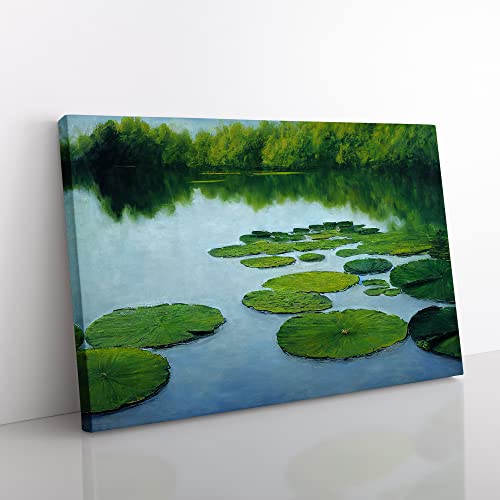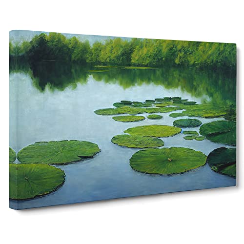 Lush Water Lily Pond Canvas Wall Art Print Ready to Hang, Framed Picture for Living Room Bedroom Home Office Décor, 30x20 Inch (76x50 cm)