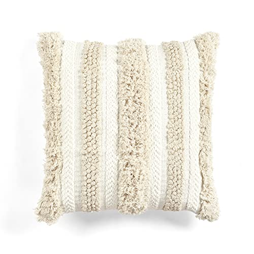 Lush Decor Wilbur Tufted Cotton Decorative Pillow Cover, 20'' x 20'', Ivory