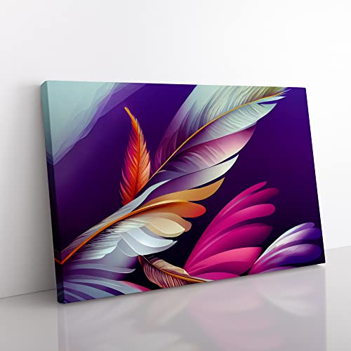Lush Bird Feathers Canvas Wall Art Print Ready to Hang, Framed Picture for Living Room Bedroom Home Office Décor, 76x50 cm (30x20 Inch)